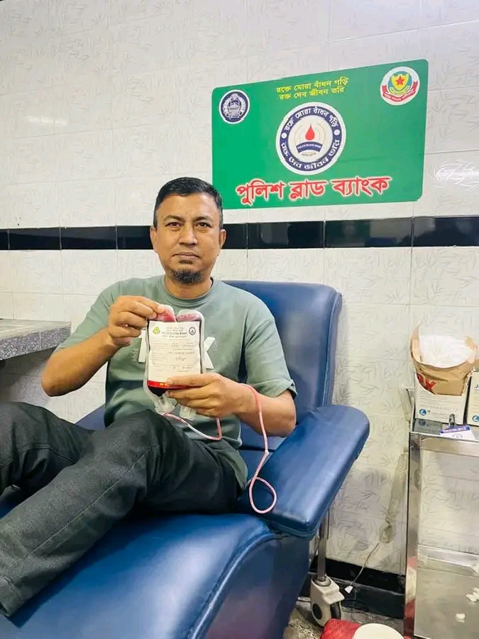 আল্লাহর অশেষ মেহেরবানীতে আজ সন্ধ্যায় সেন্ট্রাল পুলিশ হাসপাতালের পুলিশ ব্লাড ব্যাংকে এক ব্যাগ এ পজিটিভ রক্ত দেয়ার সৌভাগ্য হলো। মহান আল্লাহর কাছে প্রার্থনা করি আমাকে যেন সুস্থ রাখেন এবং মানুষের সেবায় নিয়োজিত রাখেন। সবকিছু আল্লাহর সন্তুষ্টির জন্য।