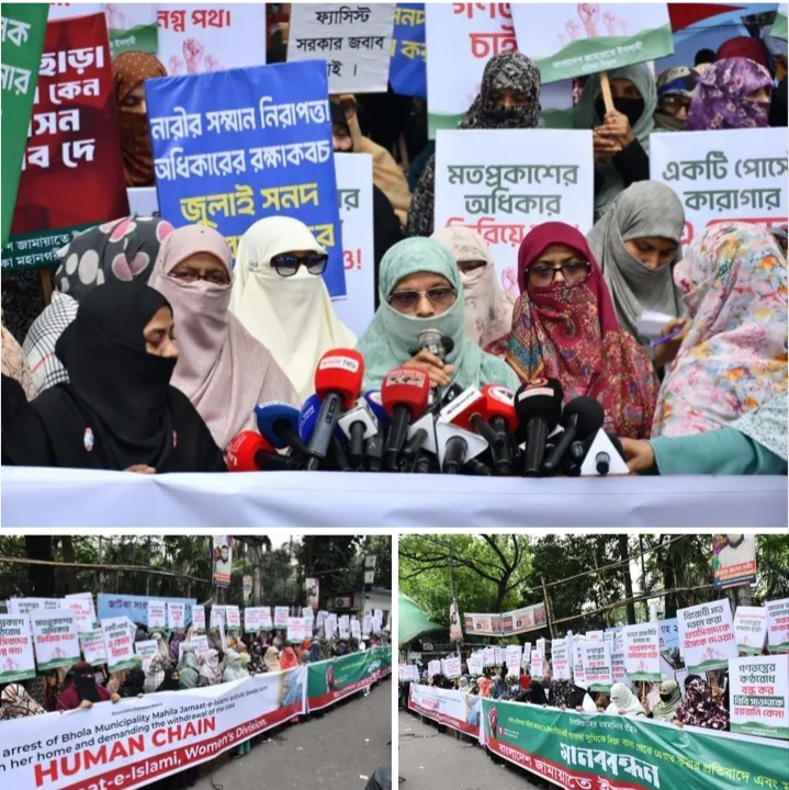 সাওদা সুমিকে গ্রেপ্তারের প্রতিবাদ এবং মামলা প্রত্যাহারের দাবিতে বাংলাদেশ জামায়াতে ইসলামী মহিলা বিভাগের মানববন্ধন: ৮ দফা দাবি