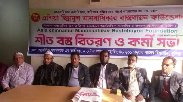 কুমিল্লায় এশিয়া ছিন্নমূল মানবাধিকার বাস্তবায়ন ফাউন্ডেশনের আঞ্চলিক অফিস উদ্বোধন কুমিল্লা প্রতিনিধি: “মানবাধিকার অগ্রাধিকার, অধিকার বঞ্চিতদের পাশে দাঁড়ানোর জন্য ধন্যবাদ”—এই স্লোগানকে সামনে রেখে কুমিল্লা আঞ্চলিক এশিয়া ছিন্নমূল মানবাধিকার বাস্তবায়ন ফাউন্ডেশনের উদ্যোগে