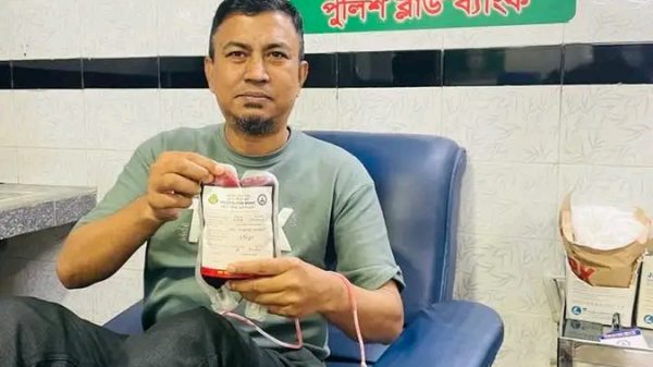 ৭২ তম! পুলিশ হাসপাতালের পুলিশ ব্লাড ব্যাংকে এক ব্যাগ এ পজিটিভ রক্ত দিয়ে ৭২ তম রক্ত দেন কামাল হোসেন ।